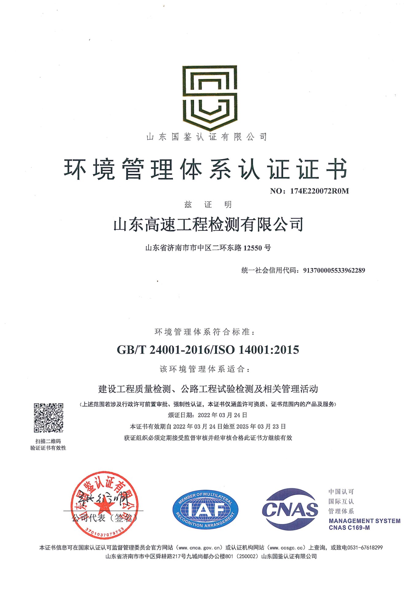 ISO14001環(huán)境管理體系認(rèn)證證書