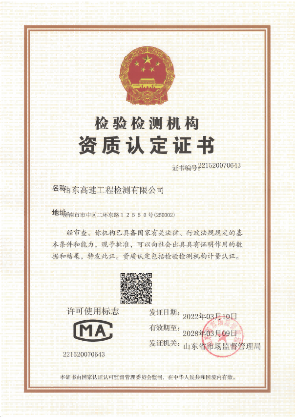 山東省市場(chǎng)監(jiān)督管理局檢驗(yàn)檢測(cè)機(jī)構(gòu)資質(zhì)認(rèn)定證書(CMA)