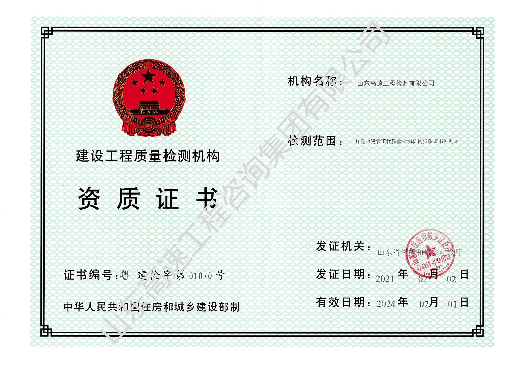 山東省住房和城鄉(xiāng)建設(shè)廳建設(shè)工程質(zhì)量檢測(cè)機(jī)構(gòu)資質(zhì)證書
