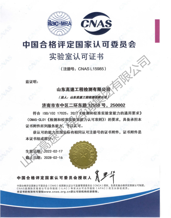 中國合格評(píng)定國家認(rèn)可委員會(huì)(CNAS)實(shí)驗(yàn)室認(rèn)可證書