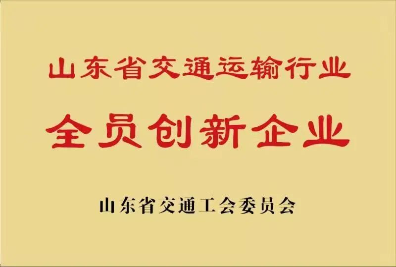 2021年9月獲得山東省交通工會委員會授予的“2021年度山東省交通運輸行業全員創新企業”榮譽稱號