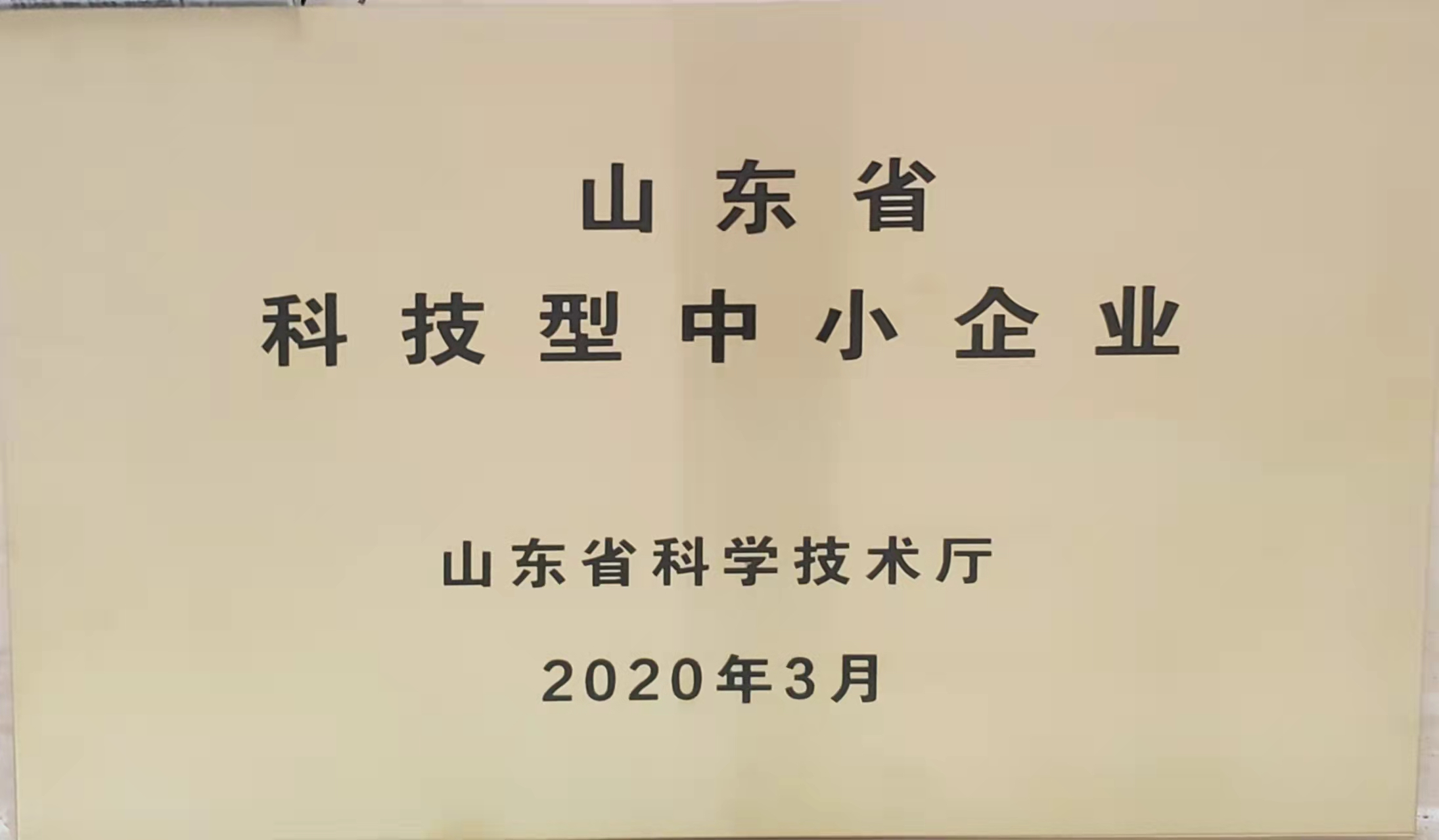 2021年3月獲得山東省科學技術廳授予的“山東省科技型中小企業”榮譽稱號