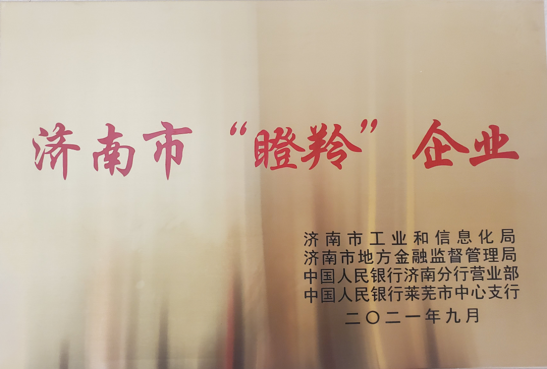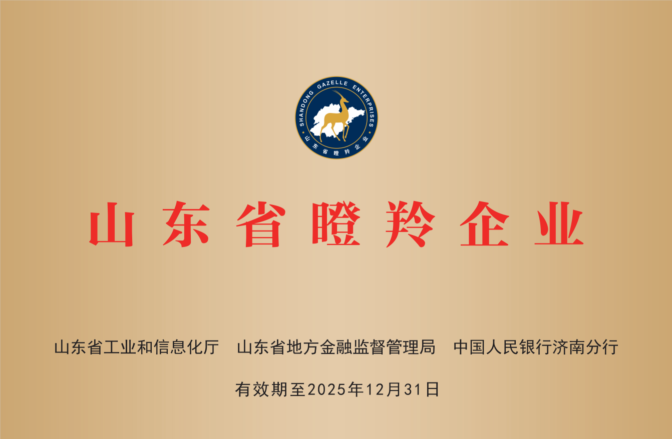 2022年7月獲得山東省工業和信息化廳、山東省地方金融監督管理局、中國人民銀行濟南分行共同授予的“山東省瞪羚企業”榮譽稱號