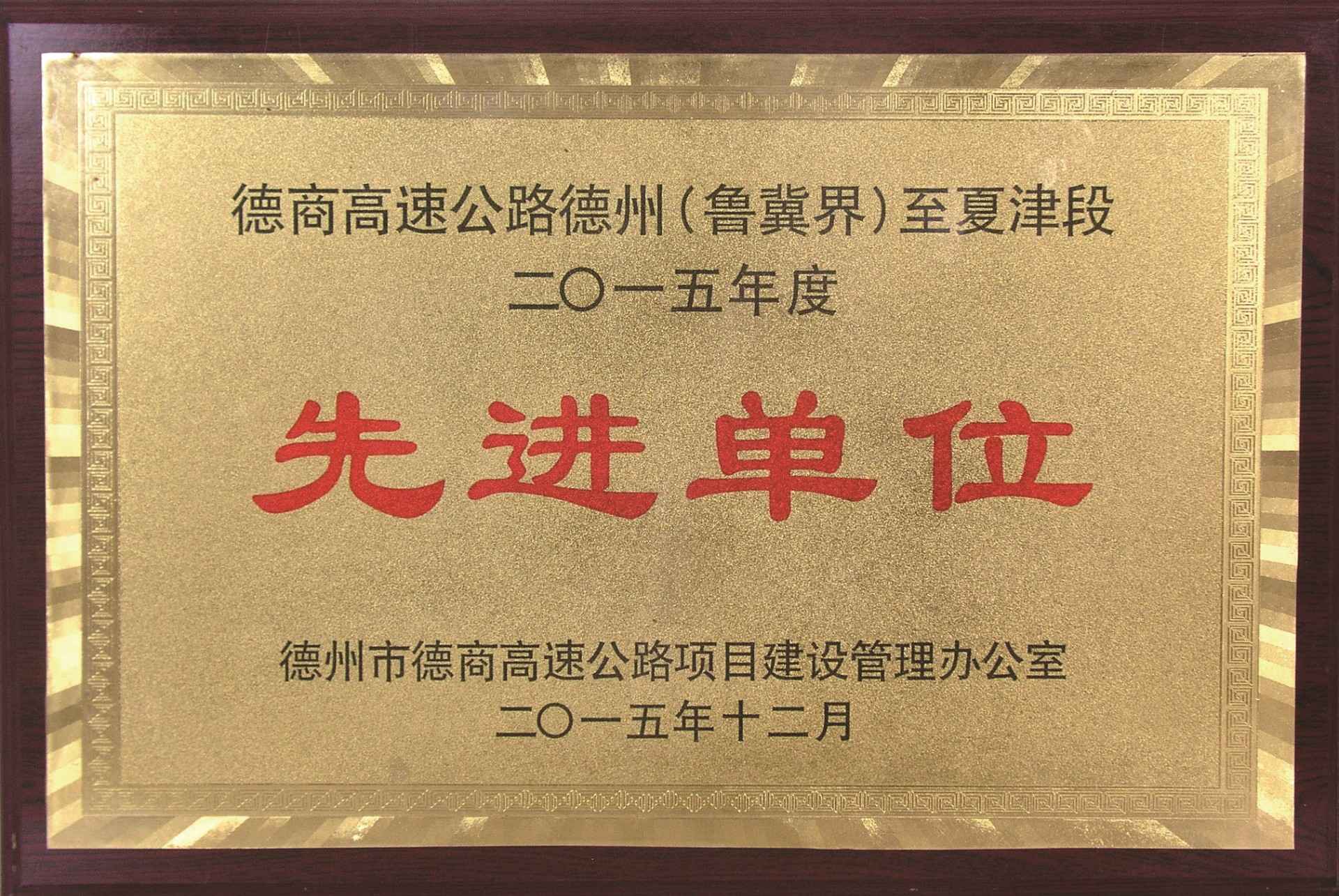 參建德商高速公路德州(魯冀界)至夏津段工程于2015年12月獲得德州市德商高速公路項目建設管理辦公室授予的“2015年度先進單位”榮譽稱號