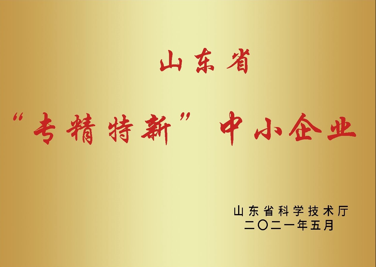 2021年5月獲得山東省科學技術廳授予的山東省“專精特新”中小企業榮譽稱號