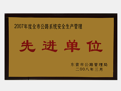 2008年3月獲得東營市公路管理局授予的“2007年度全市公路系統安全生產管理先進單位”榮譽稱號