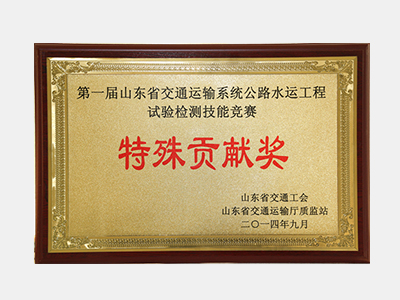 2014年9月獲得山東省交通工會、山東省交通運輸廳質監站授予的“第一屆山東省交通運輸系統公路水運工程試驗檢測技能競賽特殊貢獻獎”榮譽稱號