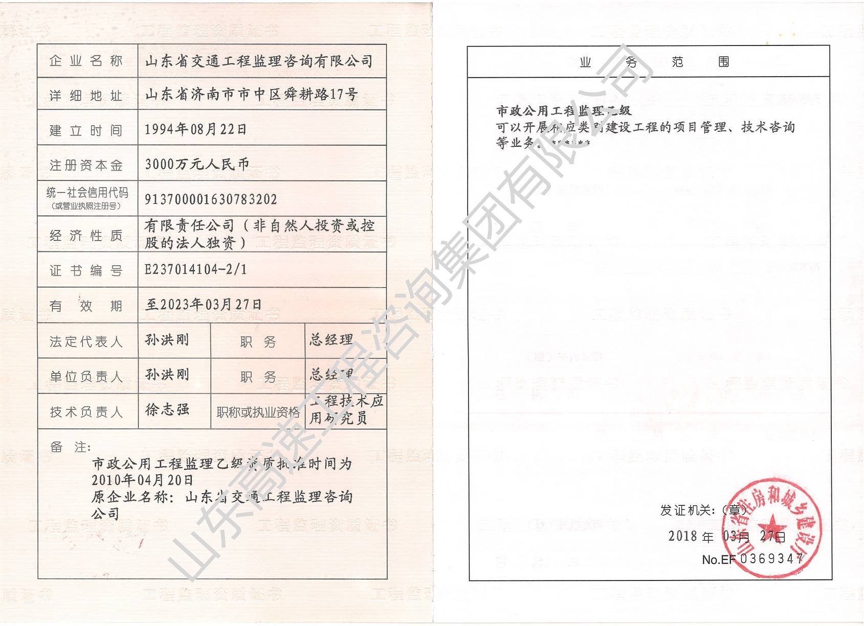 山東省住房和城鄉(xiāng)建設(shè)廳市政公用工程監(jiān)理乙級資質(zhì)