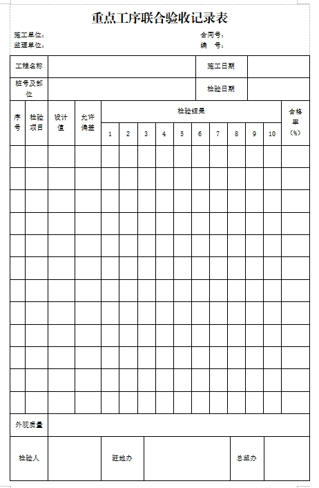 重點(diǎn)工序聯(lián)合驗(yàn)收記錄表