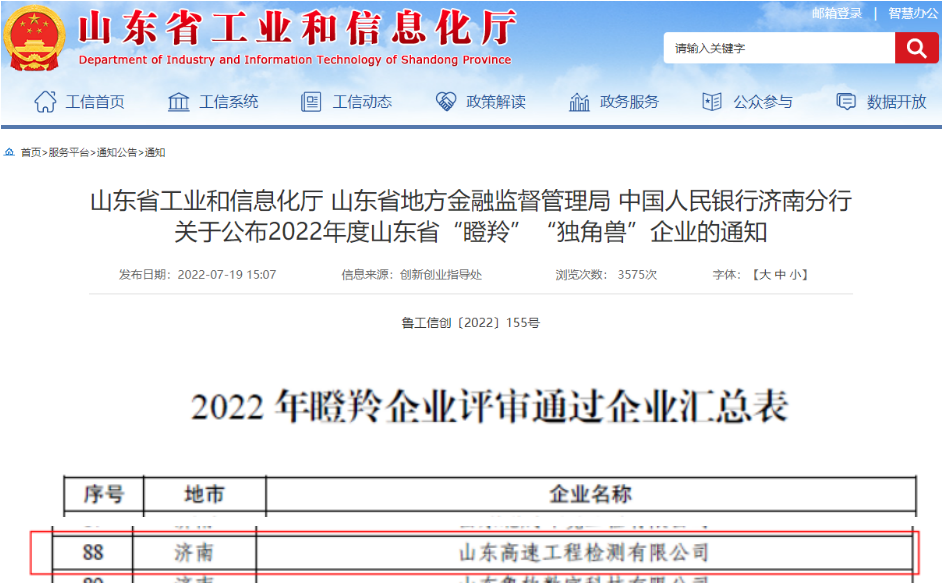 工程咨詢集團權屬檢測公司榮獲山東省“瞪羚企業”稱號