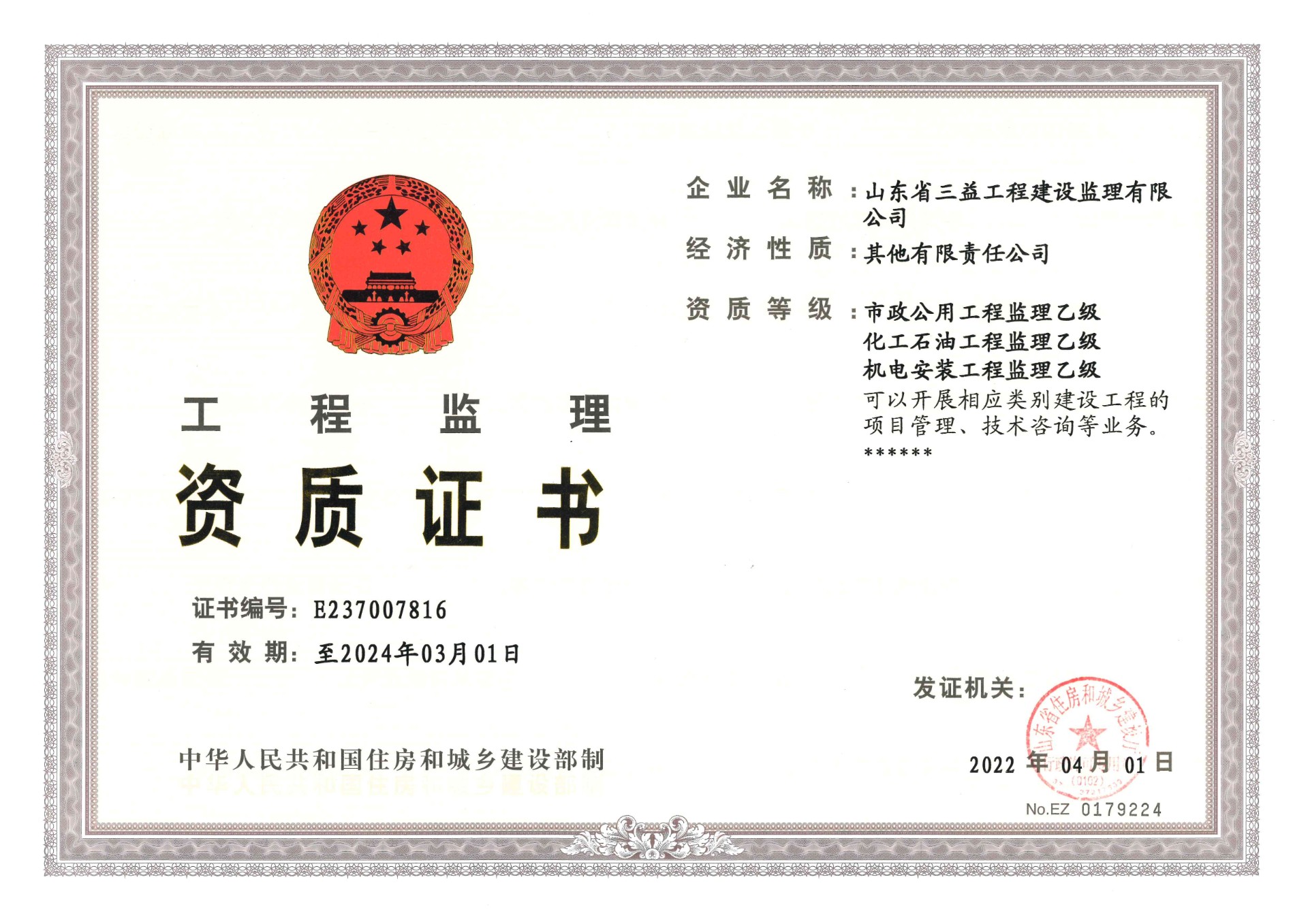 三益監(jiān)理公司再添兩項新資質(zhì)