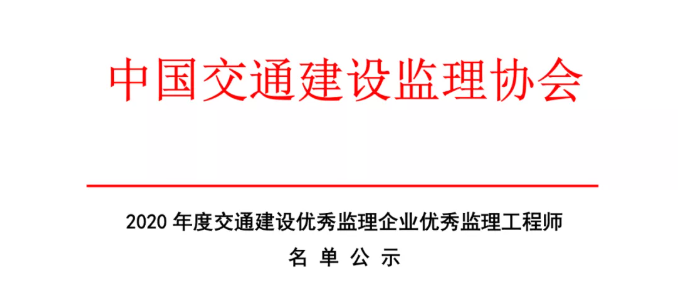 項目管理公司榮獲2020年度交通建設優秀監理企業