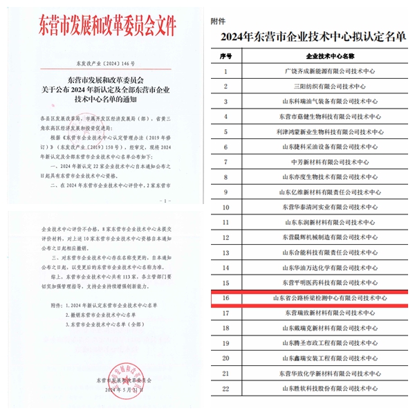 工程咨詢集團權屬山東橋檢公司 順利通過東營市企業技術中心認定
